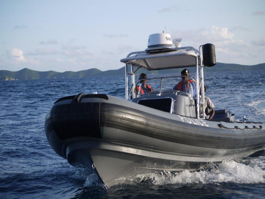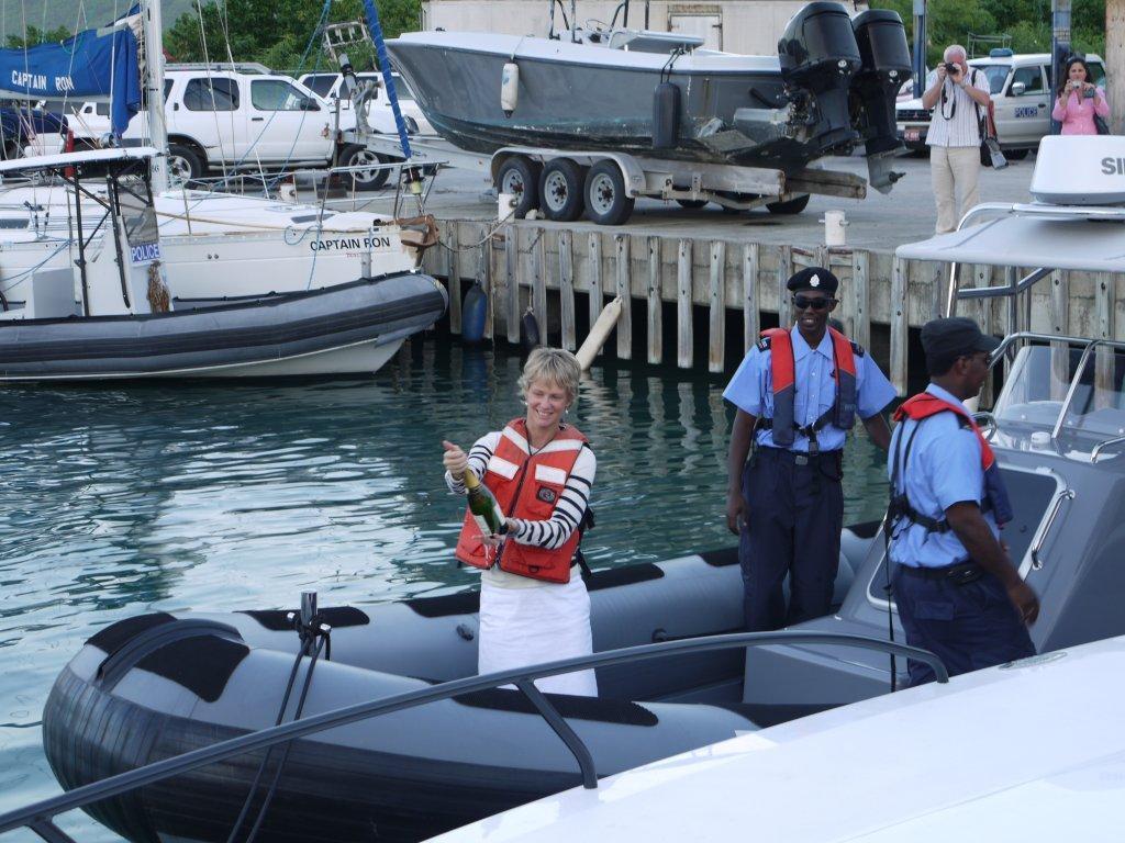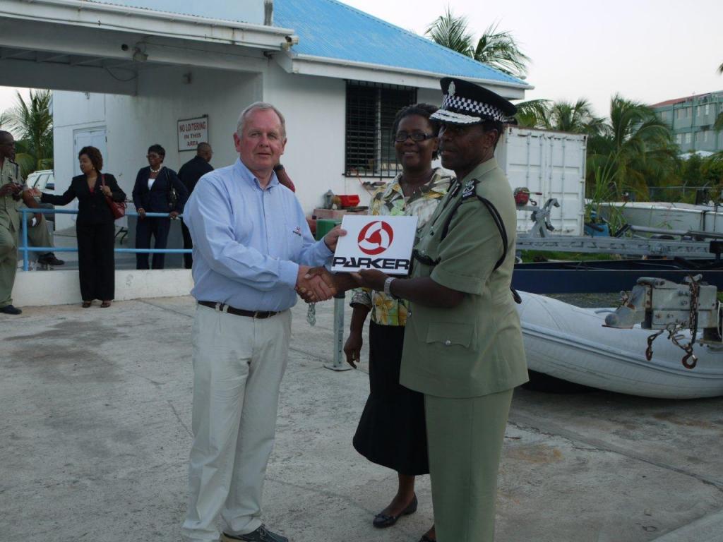 The procurement process of the Parker 900 Baltic rib started just about 2 years ago when out of the blue I got a call from the BVI Police Force asking me about our range of ribs. The handover was a very official event and was carried out in the presence of the Premier Ralph O'Neal , HM Governor Boyd McCleary and the Police Commissioner Reynell Frazer and many other invited guests not to mention the local press and TV. The rib was named DEFENDER and the God Mother was Mrs Jenny McCleary , wife of the Governor.