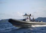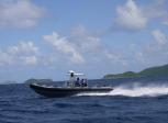 During the first day of testing Defender achieved a speed of 53 knots but since the engines needed to be run in I strongly advised the guys to take it easy. The Marine Police of the BVI are very experienced in handling all kinds of power boats and after the first day of testing their smiling faces said it all.